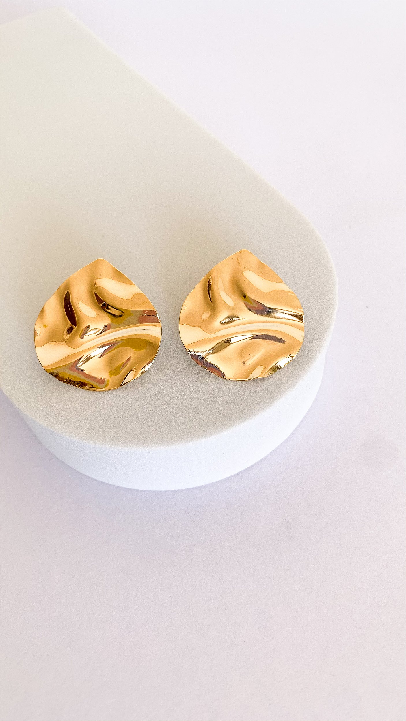 O brinco orgânico Karina possui um formato fluido e acabamento espelhado, que revela o poder do sutil em uma estética natural e elegante.